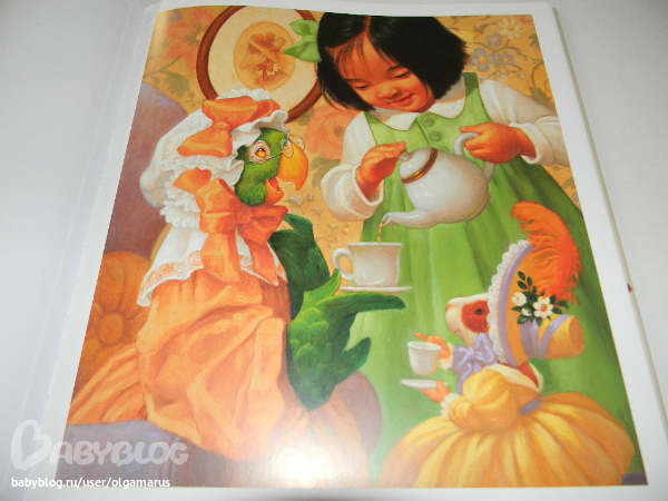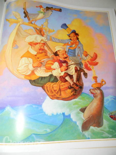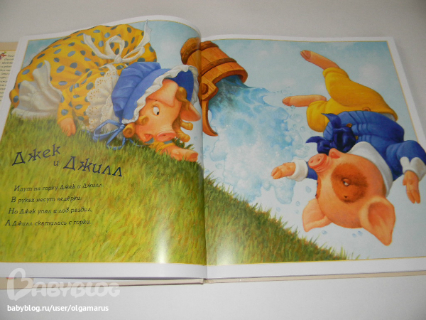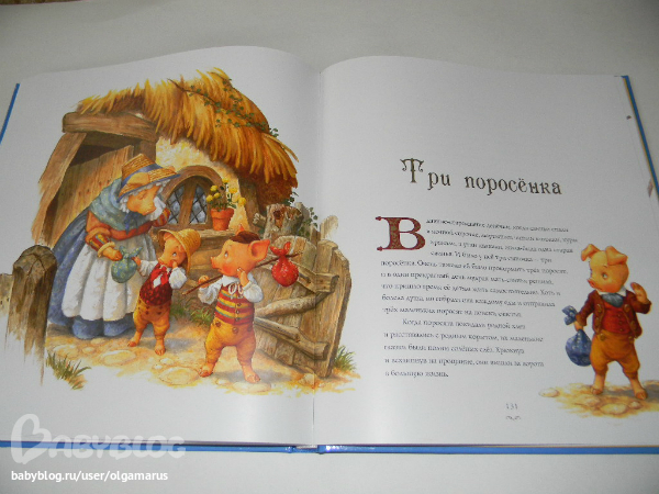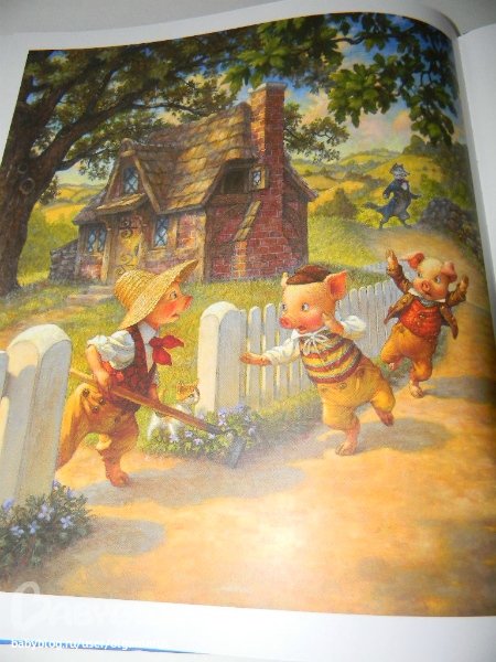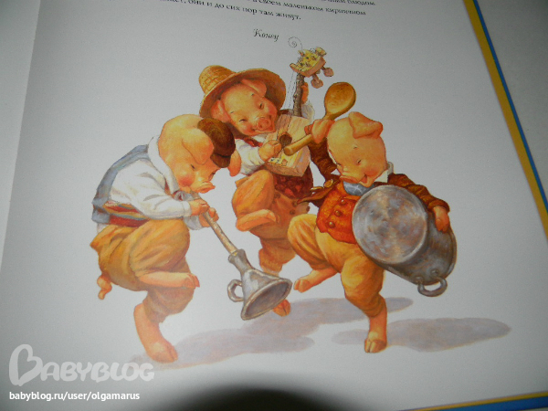 А вот обработка сказок оставляет желать лучшего, хотя если честно я ожидала что будет хуже, после прочтения отзывов в лабиринте)) про поросят совсем не тот текст к которому мы привыкли, особенно тут жуткий конец, как поросята сварили и съели волка, но к счастью художник не стал это зрелище рисовать))