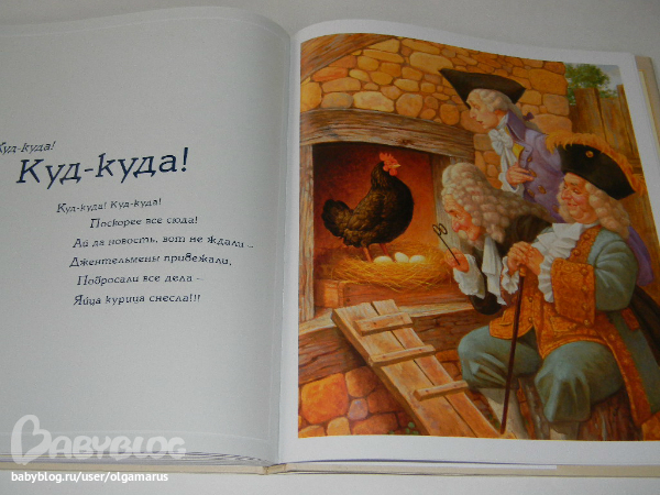остальные сказки тоже не в совсем , привычной обработке, но я когда читаю сыну, пересказываю так как привычней. а иллюстрации сын очень любит разглядывать, еще мне нравится что иллюстрации не отстают и не опережают текст, как сейчас практикуется во многих книгах))