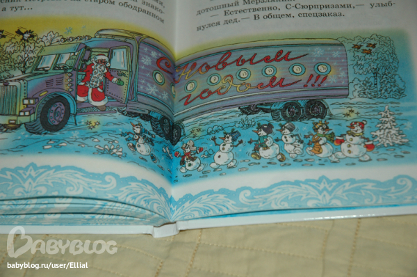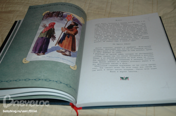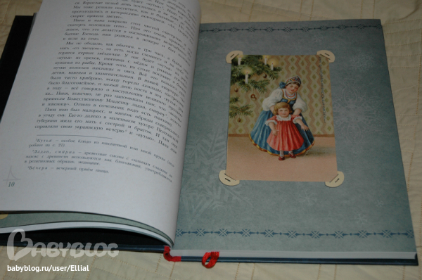 В книге по-мимо рассказов есть страницы др цвета в которых рассказывается о традициях празднования нового года на Руси,какие блюда готовились,какие игрушки делали и тд