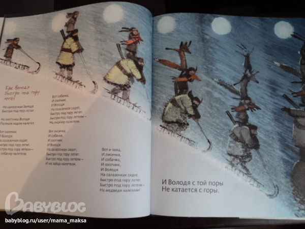 И подбор стихотворений в книге напоминает конструктор из двух ранее изданных книг, проиллюстрированных по раздельности этими же художниками. К сожалению, эту книгу в руках я не держала, поэтому промолчу. Возможно, кто-то меня дополнит?