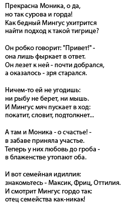 Коротенькая история про то как кот Мингус добивался расположения кошечки Моники :)