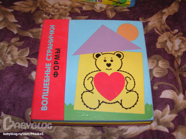 Здесь цветная страница а в ней фигура другого цвета. Страниц 4 - как и фигур - треугольник, круг, квадрат и сердечко. Но дочке нравилась эта книжка) Особенно оранжевый круг! Мы с ним не расставались!
