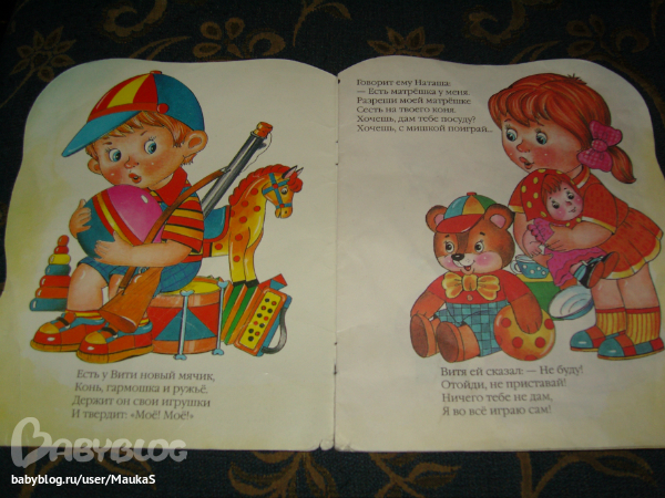 11. ОО! Это наша любимая книжка. Ничего тебе не дам. Я читаю её по 5 раз подряд!!!!! Лица у детей на рисунках идентичны и как их дочка различает! Но стих хороший! О том что низзя быть жадиной!