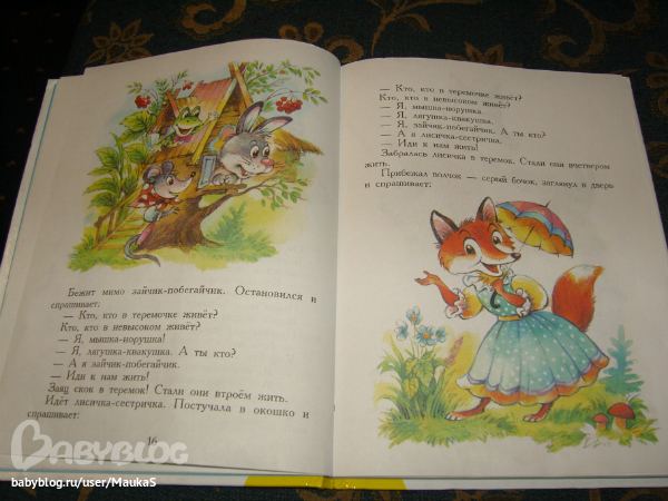 А вот Теремок - любим. Очень красивый, даже новый покупать не хочу! Чудесные рисунки и формат книги весьма удобный.