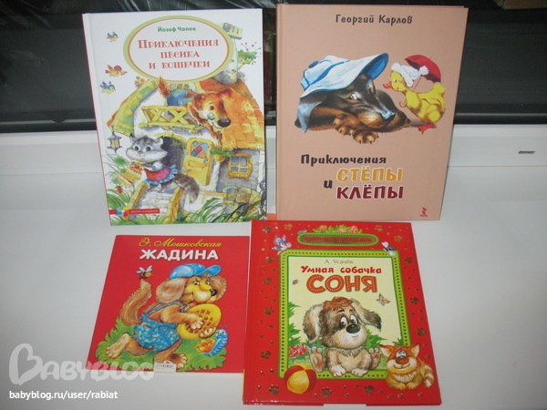 От трех до пятиУ нас в ноябре умер такс. Мы его очень любили, а для Есики он был настоящим Другом. Переживает она до сих пор, каждый день о нем говорит. В колыбельной я обязательно должна упомянуть Бончика, спит с 5 собачками. Одну - весь день с собой носит. И читаем... мы читаем о собаках. "про Стёпу и Клёпу" - самая любимая. + стихотворения из сборников. Может вы ещё какие- нибудь книги посоветуете. Вот то, что есть: