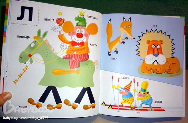 Буквы надо именно выискивать, так как тут их на разворот много (и нравится что в словах они выделены красным цветом). На букве "Л"мы их просто отыскивали и считали, так необычно они "попрятаны".