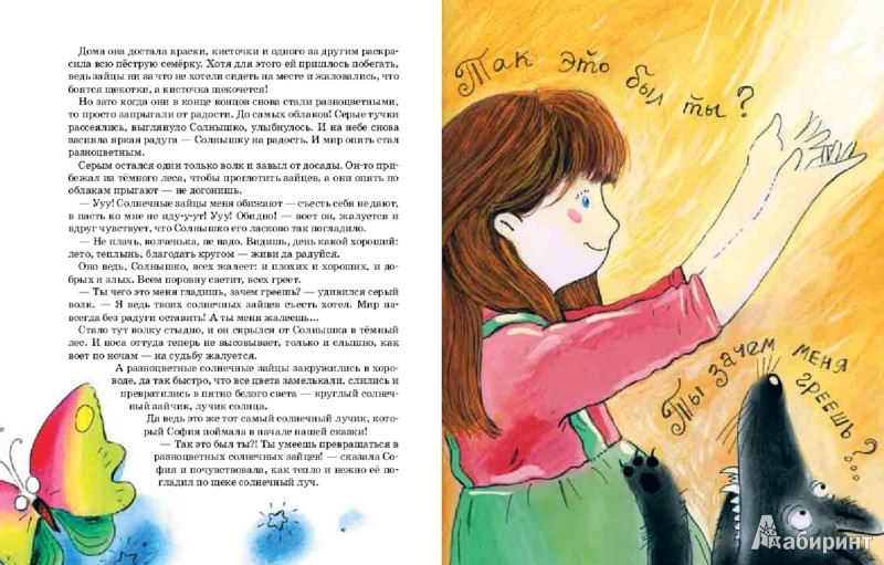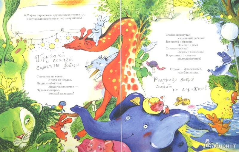 Сказочная история Веры Цаплиной переносит нас в теплое лето, где всё цветет и сияет яркими красками. Здесь резвятся веселые солнечные зайчики, происходят удивительные события, а главное – идет увлекательная игра в цвета и краски, в которую оказываются вовлеченными и сами маленькие читатели. Те из них, кто любит рисовать, как героиня книги девочка София, получат немало интересных и полезных сведений о тайнах солнечного лучика и разноцветного волшебного мостика – радуги, о том, как смешивать краски, разберутся в забавной путанице цветов, узнают, как лечат созданные художниками произведения от страшной болезни – потери цвета.
