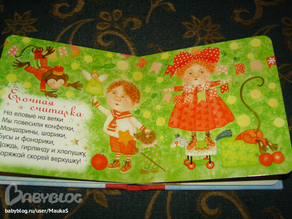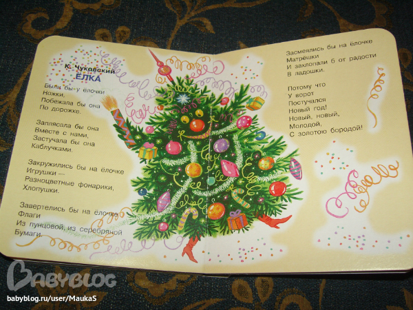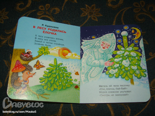 Ну и о приятном (смирившись с размером и толщиной книги) - мы её почитали - точнее поразглядывали картинки) Содержание - изестные стишки и песенки на зимне новогоднюю тематику (что в общем-то и требовалось, но как-то после Ёлки Аленки - хочется чего-то большего что ли..)