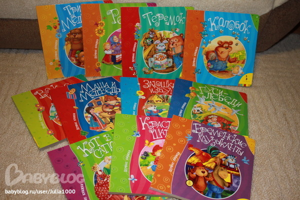 Взяла почти всю серию. Книги-картонки, яркие, надолго хватит, можно брать с собой куда-то в отличие от больших сборников.