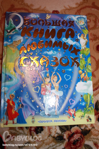 Большая книга любимых сказок. Хорошая книга с небольшими рассказами или сказками.Только с полутора лет начали воспринимать и интересоваться,а раньше- никак.