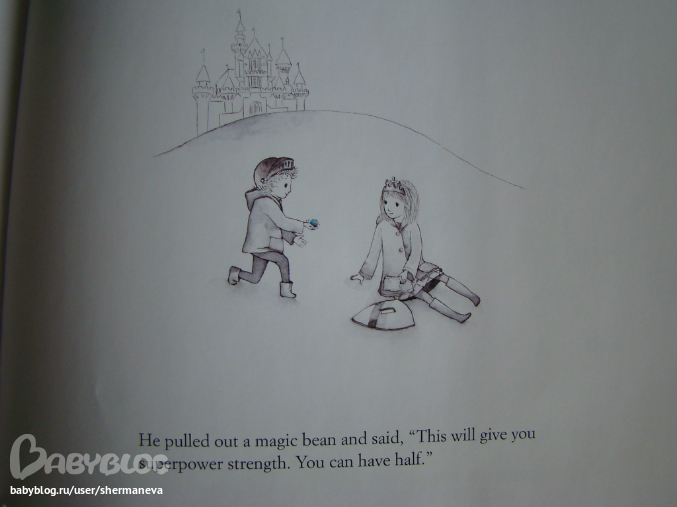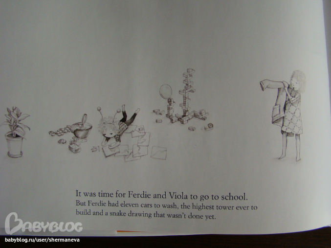 1. Это очень своеобразная книжка. Мне она очень нравится. Саше она очень нравится - меня это очень радует. Значит, вкус формируется в нужном направлении))). Книжка об игре, дружбе и игре воображения. Сестричка увлекает брата, который не хочет идти в школу, в необыкновенное путешествие, полное приключений.