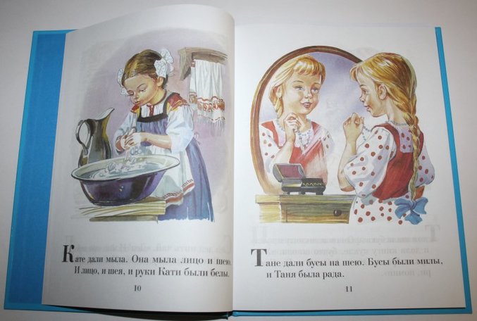 Нам 4,5 месяца. Имеются всякие картиночки, книжечки с русскими народными сказками (Репка, Курочка Ряба и др.) с толстыми картонными страничками, книжки для ванной, всякие книжечки с потешками и песенками. Все это мы любим слушать, рассматривать, щупать и тянуть в рот, конечно. =))