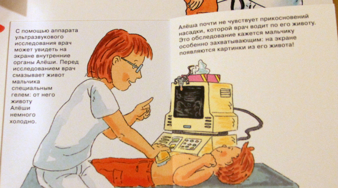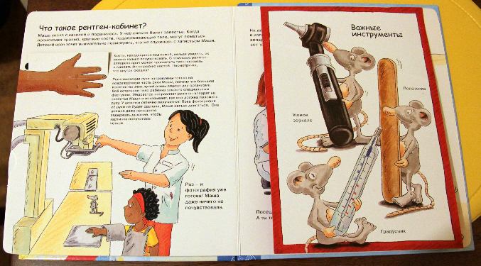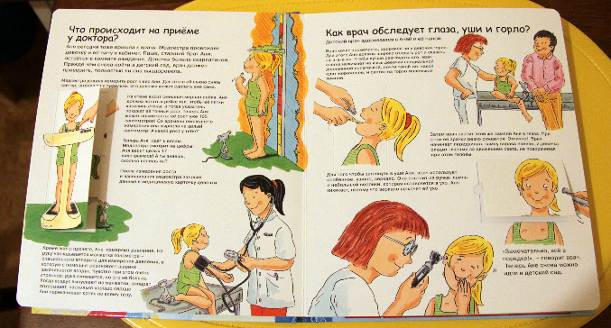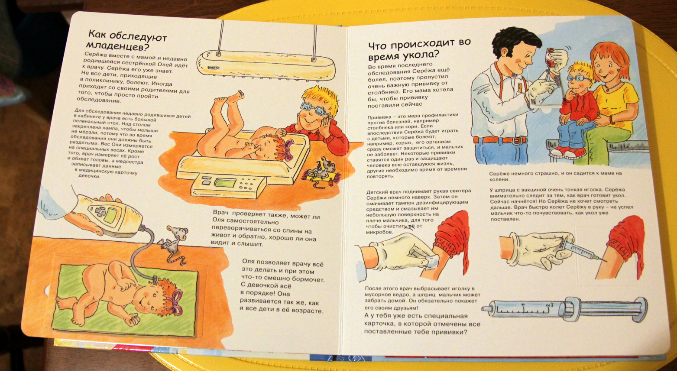 Надо сказать, что мой сын ужасно боится врачей. Начинает рыдать прямо при входе в медучреждения (даже негосударственные и больше похожие на игровые центры, чем на поликлиники)... Так что я очень надеюсь, что эта книжка поможет нам спокойнее относиться к медицинским процедурам и что сын будет даваться врачам, чтобы они его посмотрели.