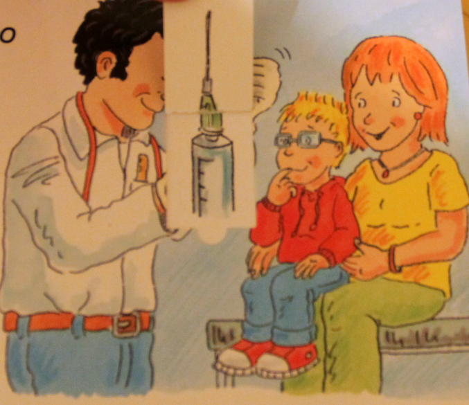 Тут его очень заинтересовали уколы, и он долго играл в то, как доктор сначала протирает ручку, потом колет, потом клеит пластырь.