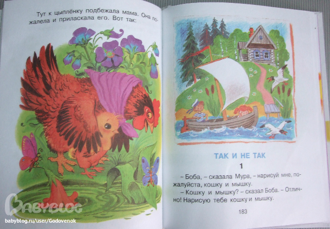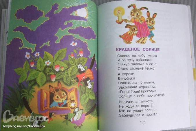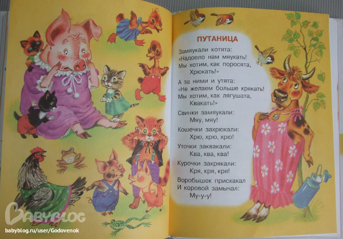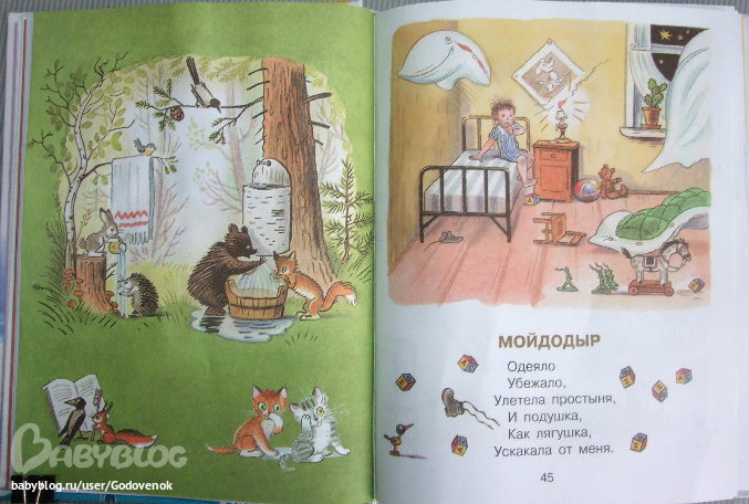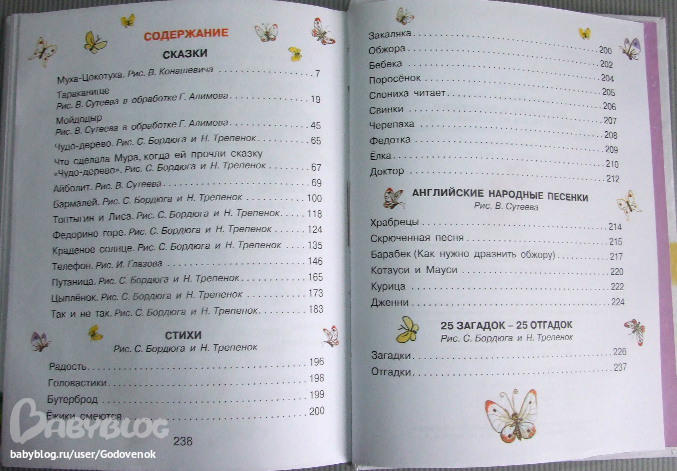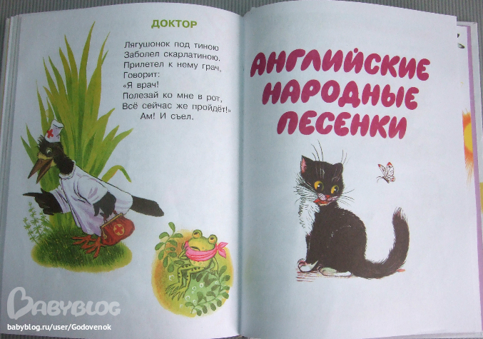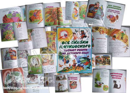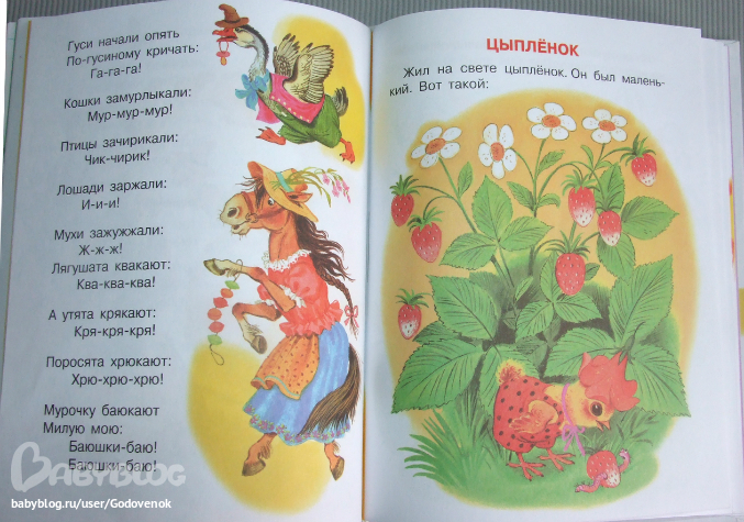 Небольшой удобный формат, много картинок, большая подборка произведений - есть и сказки Чуковского, и стихи, и переводные песенки (англ. народные), и загадки. Иллюстрации в основном известные - Сутеева, Бордюка, Трепенок.