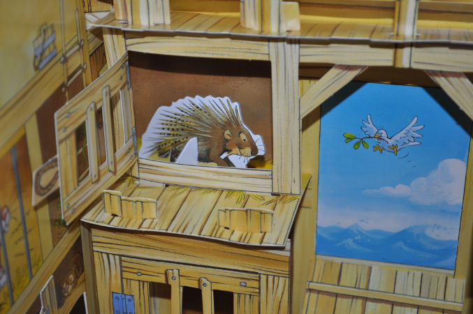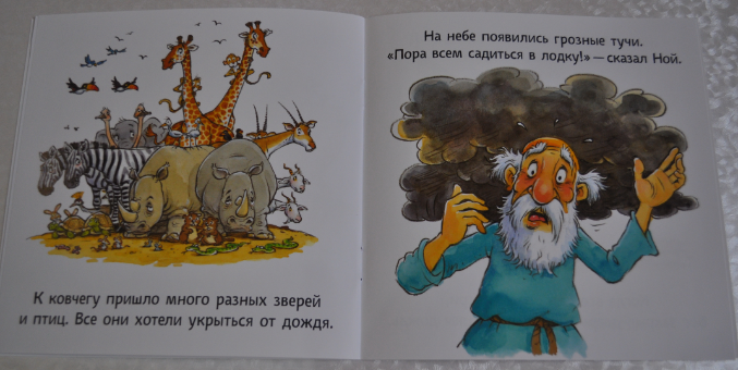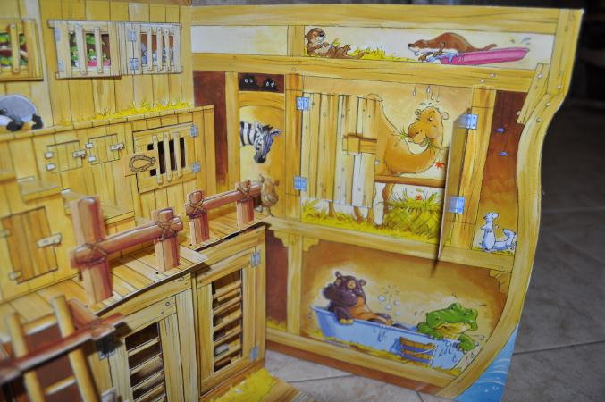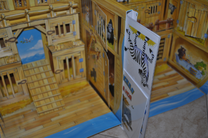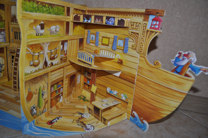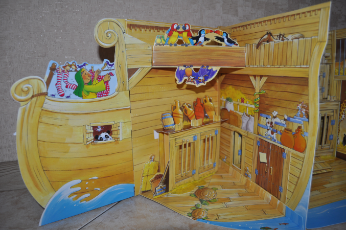 Эта книга - подарок сынишке на Пасху. Любовалась и игралась я пока он спал. Ох, как велик был соблазн оставить панораму раскрытой, чтобы он увидел это чудо когда проснется, но я себя поборола - не хотелось лишать мужа радости видеть восторг сына, когда он увидит этот подарок и сесть в светлый праздник втроем вокруг ковчега и сочинять свои истории про его обитателей)))) Я уже подумываю над тем, а не купить ли мне еще один экземпляр для крестницы - лучшего подарка к празднику я сейчас и представить не могу.