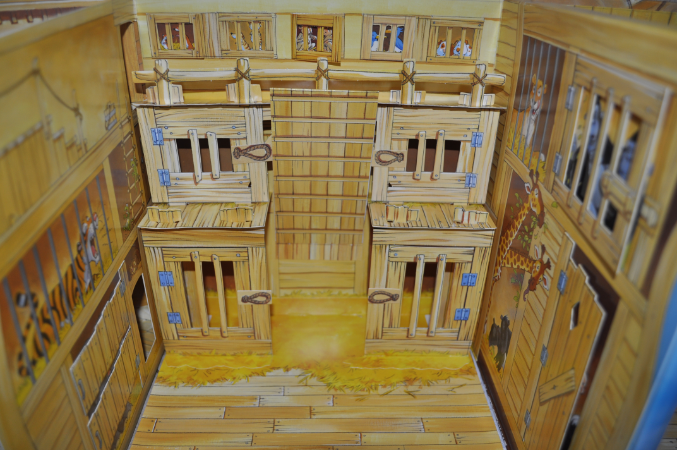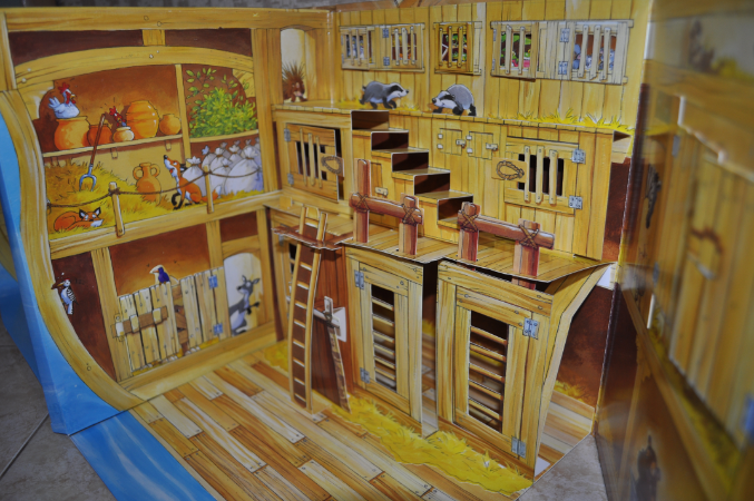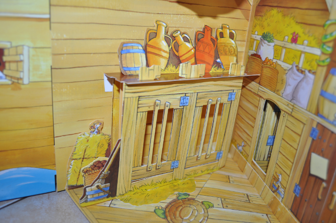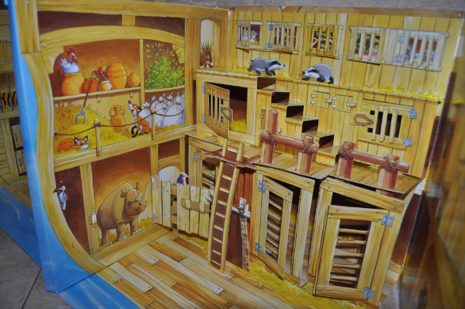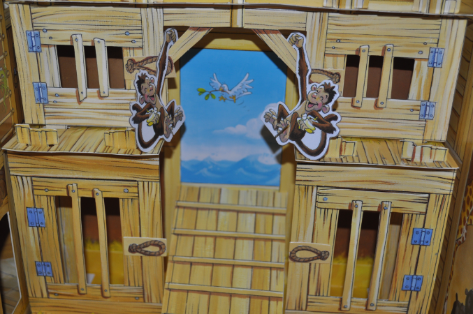 Все дверцы у стойлов и клеток открываются и туда можно ставить картонные фигурки животных, которые покажу ниже.