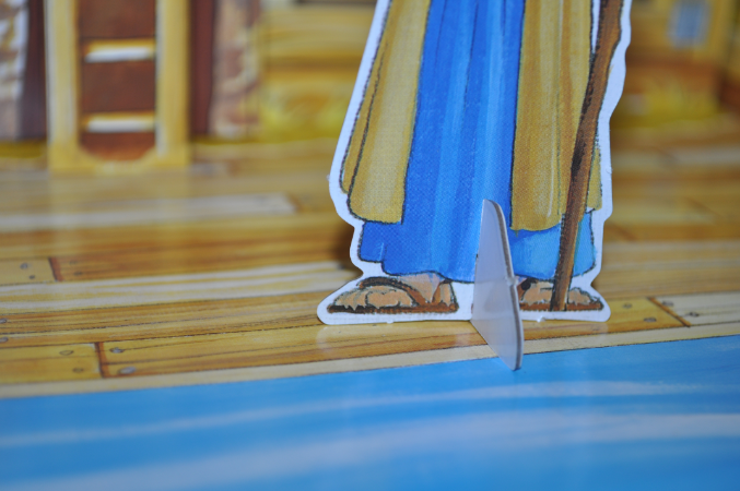 Видно, как идеально фигурке подходит подставка, фигурка в ней не болтается, и не висит в воздухе, Ной уверенно стоит на ногах))) Потом фигурки легко вставились обратно в картонный лист и были аккуратно убраны в тайничок))