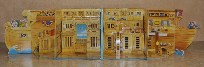 ... эта книга - панорама!!! Причем ооооооочень большая панорама, в разложенном виде длина ковчега больше 120 см, в высоту 29 см.