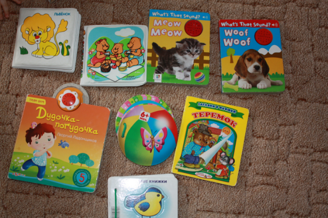 всё подряд: мягкие книжки для ванной, книжки с озвученными стихами, книжки от знакомой аж из Австралии с котятами и щенками, мяукают и тявкают))