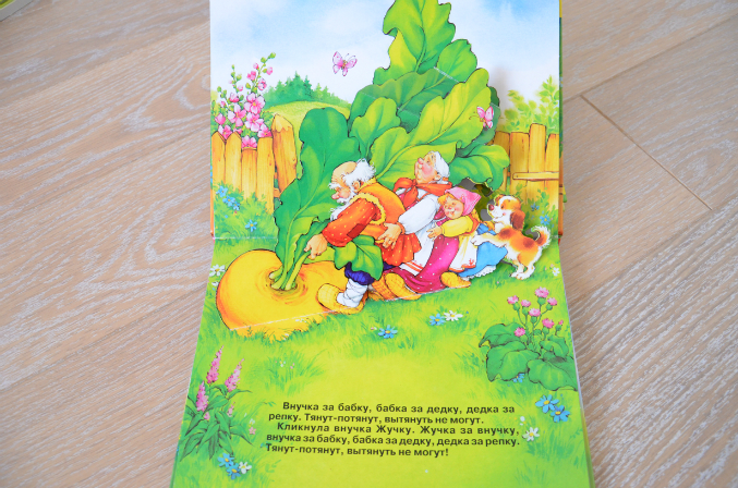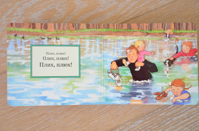 Идем ловить медведя, потрясающая история о том, как семья идет ловить медведя, преодолевая препятствия. Дочка обожает эту книжку, особенно в исполнении папы!