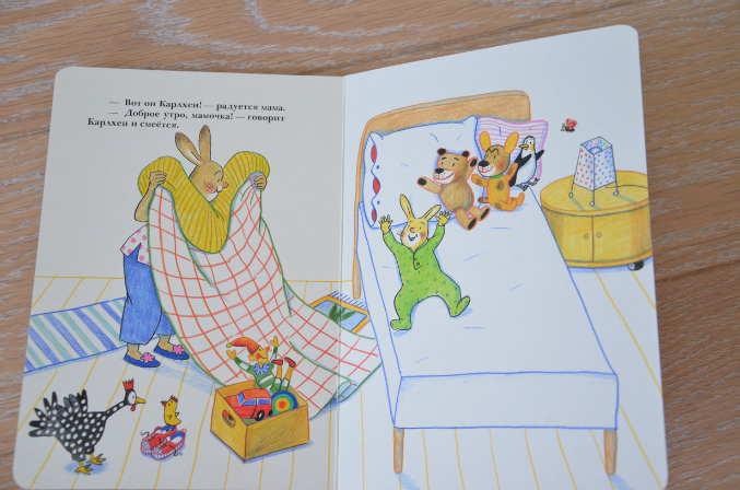 С добрым утром, Карлхен! Очень милая, добрая книжечка о маленьком зайчике. Дочка в конце книги тоже поднимает ручки))