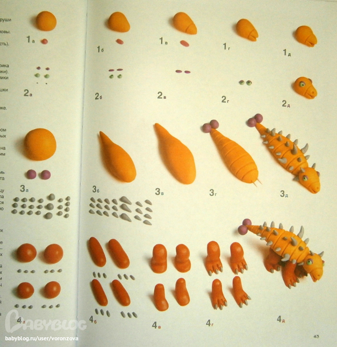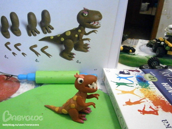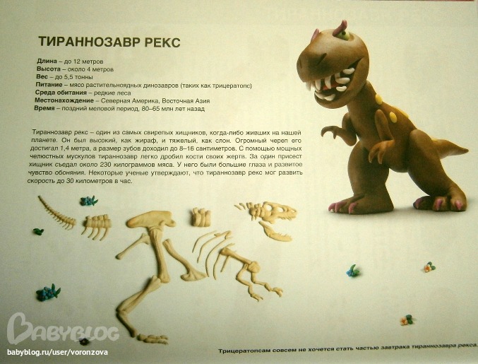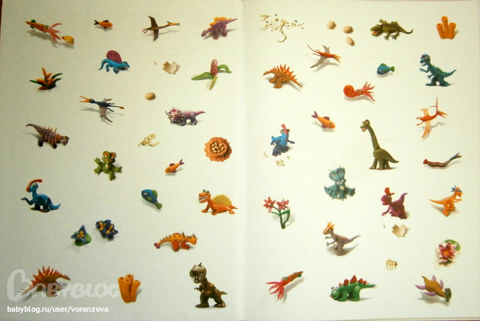 Книга большого формата в твердом переплете. В ней подробнейшим образом расписано и показано как создать динозаврика )))
