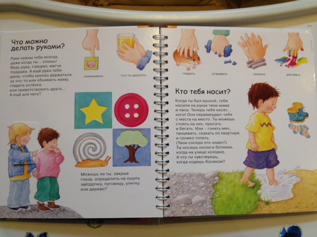 Эта книжка у нас в переводе. Дана, в принципе, основная информация для малышей о строении тела (только внешнее), даже есть отличие девочки от мальчика (не акцентированно, иллюстрации обоих голышей). Странички для чего нам нужны глаза, уши, рот, нос, руки и ноги. Основные навыки ребенка. Эмоции. Что такое заболеть. Что дети обычно любят, а что - нет. Дочке нравится очень. Демонстрирует, что умеют ручки и ножки. Как люди плачут и смеются. Показывает, что она любит.