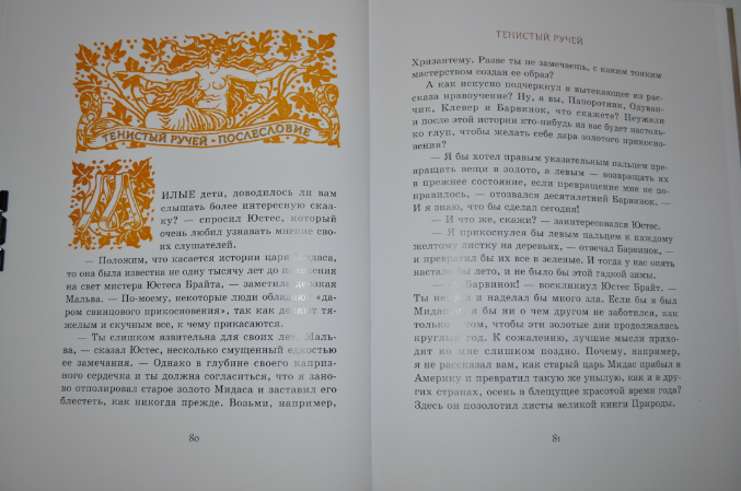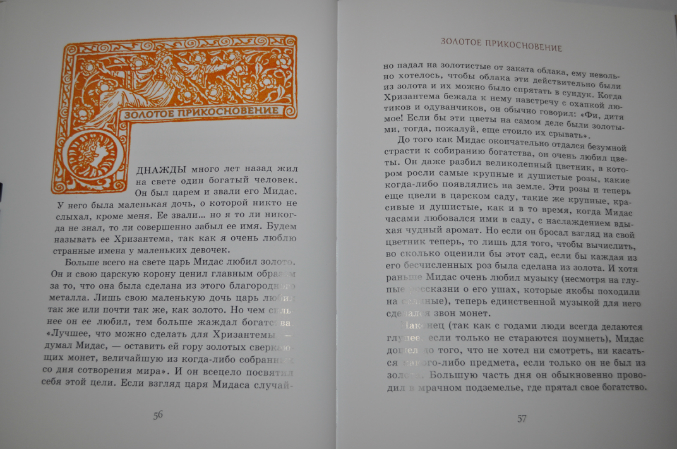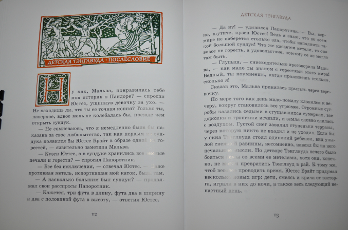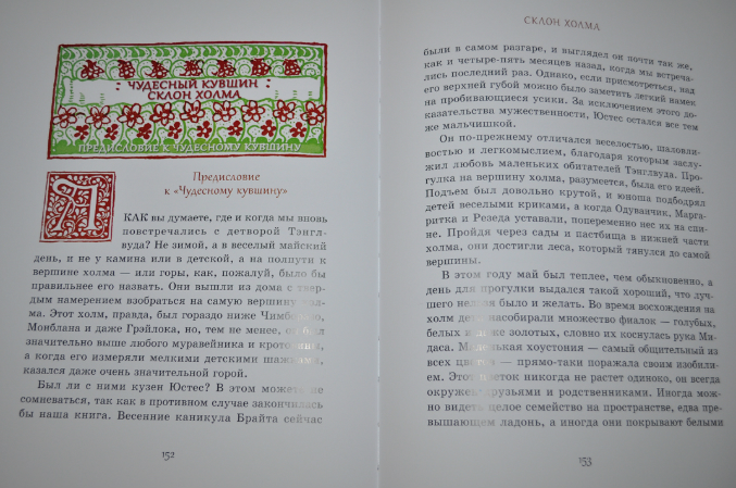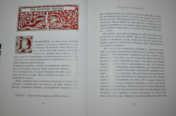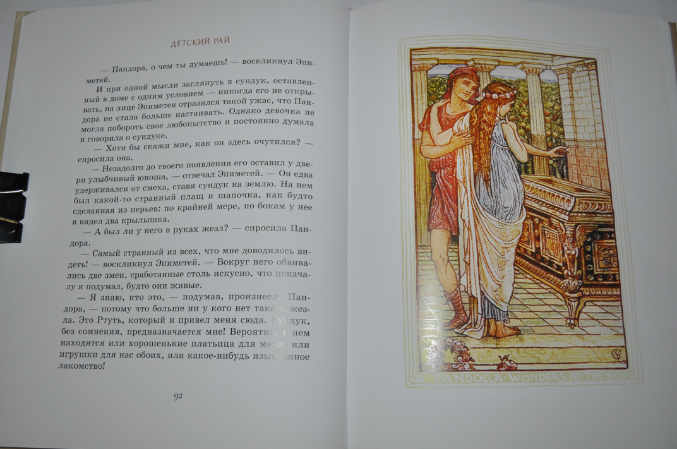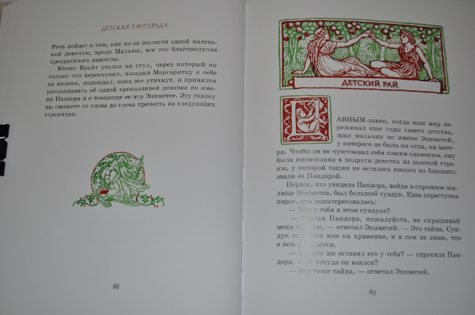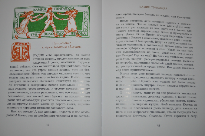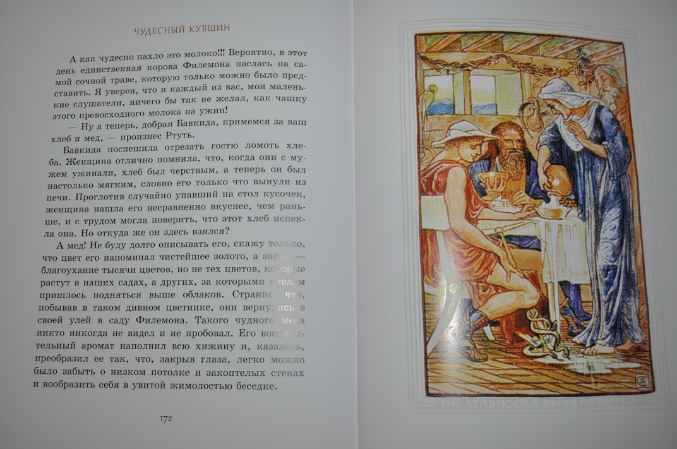 Хочется сказать спасибо "Олме" за издание этой книги: замечательный перевод Л. Даниловой, потрясающие иллюстрации Уолтера Крейна, очень плотная матовая мелованная бумага, никаких рамочек, рюшечек и прочих украшательств, тканевый корешок - книга оправдывает свое название, она чудесна во всех отношениях - и по качеству и по содержанию!