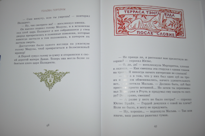 У меня мелькнула мысль, что вот этот прием, который переносит нас из реальности в сказку, автор задумал еще и для того, чтобы объяснить почему он пересказал мифы по-своему. В предисловии к одной сказке (а любая сказка заканчивается предисловием и послесловием, возвращающим нас к маленьким слушателям и рассказчику), Юстесу выпало настоящее испытание, его изложение мифов захотели послушать взрослые, и эта идея не пришлась ему по душе "ни одному человеку пятидесяти лет, который знает классические мифы с юности, не могут понравится мои фантазии". Но Юстесу пришлось согласиться: "Только прошу вас, будьте добры, помните, что в своих сказках я учитываю вкусы и пристрастия детей, а не взрослых". И, конечно, его сказка подверглась критике! На что он ответил: "... если вы вложили теплоту, чувство, страсть или какое-либо нравоучение в классическую форму , вы получаете нечто совершенно иное по сравнению с тем, что было раньше." Он говорит, что хоть образы созданные греками красивы, но они холодны и бездушны.