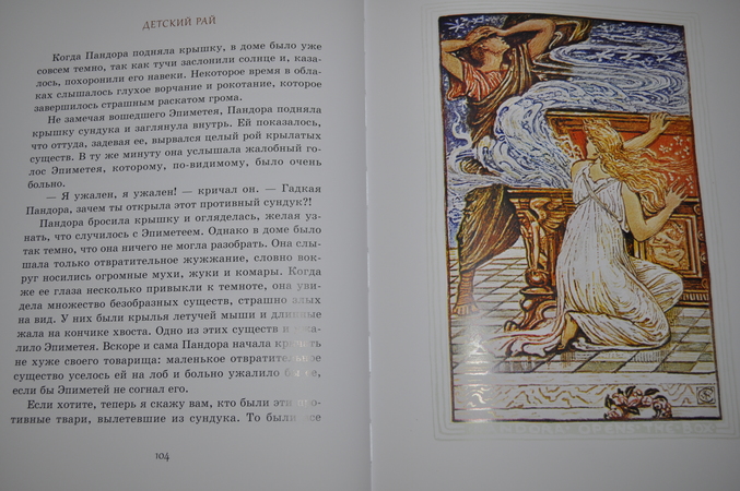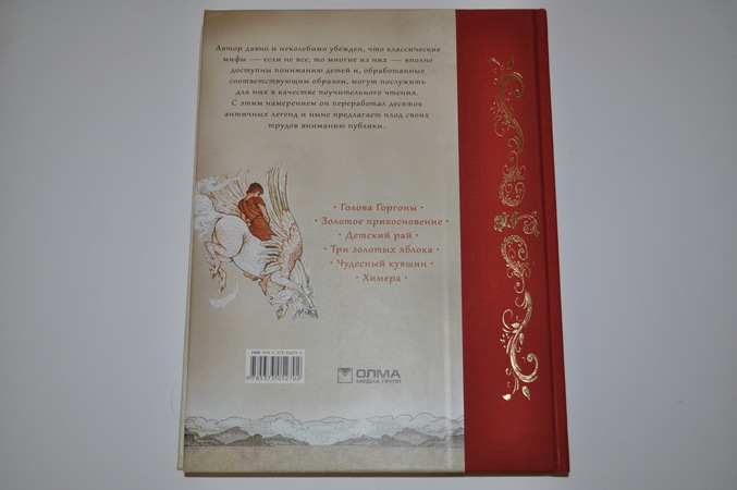 Я не буду пересказывать каждую сказку, проводить сравнительный анализ с первоисточником и т.д. Неблагодарное это дело. Скажу лишь одно - благодаря Н. Готорну я вновь смогла окунуться в мир древнегреческих мифов! Герои, сюжеты - все то же самое, но он от себя добавил много деталей, "милой чепухи", для детей именно это и "составляет главную прелесть" его сказок. Да и мне в таком изложении мифы понравились гораздо больше, они стали красочнее, интереснее, с толикой юмора. Сюжеты всем давно знакомы - о храбром Персее, победившем Медузу Горгону, о царе Мидасе, страстно любившем золото, о любопытной Пандоре, открывшей злосчастный ящик, о подвигах Геркулеса, о гостеприимных бедняках Филемоне и Бавкиде, о Пегасе и Беллерофонте, одержавшем верх над страшной Химерой.
