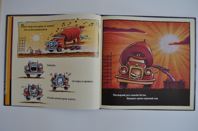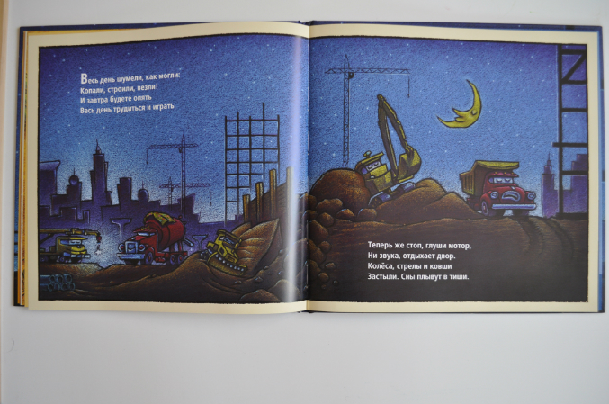 В покупке этой книги я ни сколько не сомневалась, даже цена не сильно смущала, а она, конечно, завышена. Уж больно сын любит строительные машины, а мама, чтобы текст был в стихах (я постоянно говорю о том, что мне читать в стихах одно и то же по сто тысяч раз не так надоедает, как прозу). В общем, книга -компромисс, и сыну интересно и маме хорошо))). Как следует из названия книга - засыпательная. Так что днем мы ее не читаем, но зато наверстываем за весь день перед сном и тогда я не просто "мама", а "мамаещёраз".