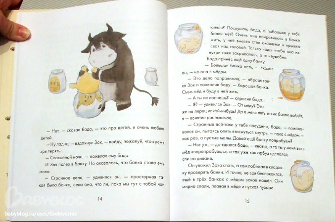 Иллюстрации в книге мне очень понравились - выполненные в мягких и спокойных тонах картинки вызывают симпатию. Эти произведения иллюстрировалось и другими художниками. Но мне показалось, что именно работы Елены Кубышевой в книгах издательского дома "Манн, Иванов и Фербер" наиболее подходят для детей. Иллюстраций достаточно много, но есть развороты без картинок. И мне показалось, что в книге "Зоки и бада" иллюстраций больше, чем книге "Школа зоков и бады".