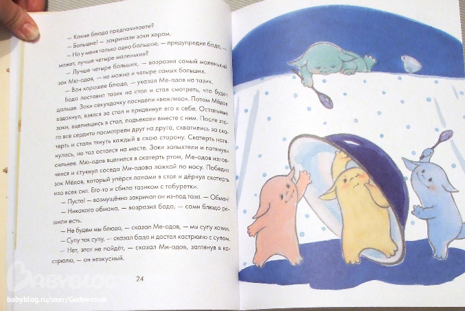Теперь скажу несколько слов о недостатках - куда же без них. Лично мне не очень понравилось, что имена всех зоков похожи: Мёдов, Ме-одов, Ми-одов, Мю-одов. Я не собираюсь критиковать авторов, однако, мне показалось, что такой подбор имен сложен для восприятия детьми.