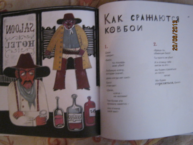 Мне нравится легкость и кажущаяся простота стихов, мне нравится приглашение к игре, которое сквозит в каждом стихотворении. Мне нравится реалистичность, но без кровавых подробностей. Мне нравятся рисунки, которые очень подходят стихам, хотя я и не поклонник вот таких изображений. Но здесь они удивительно к месту.