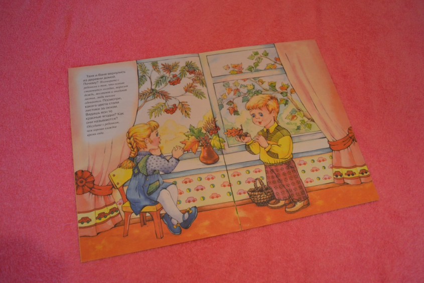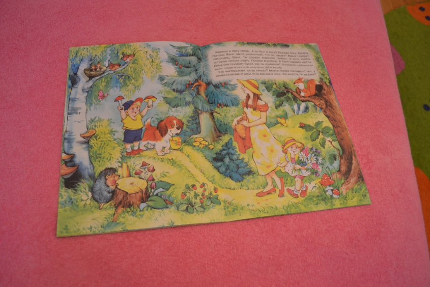 Иллюстрации очень приятные. На страницах подсказки для родителей, на что обратить внимание ребенка, какие вопросы задать по материалу, что рассказать.