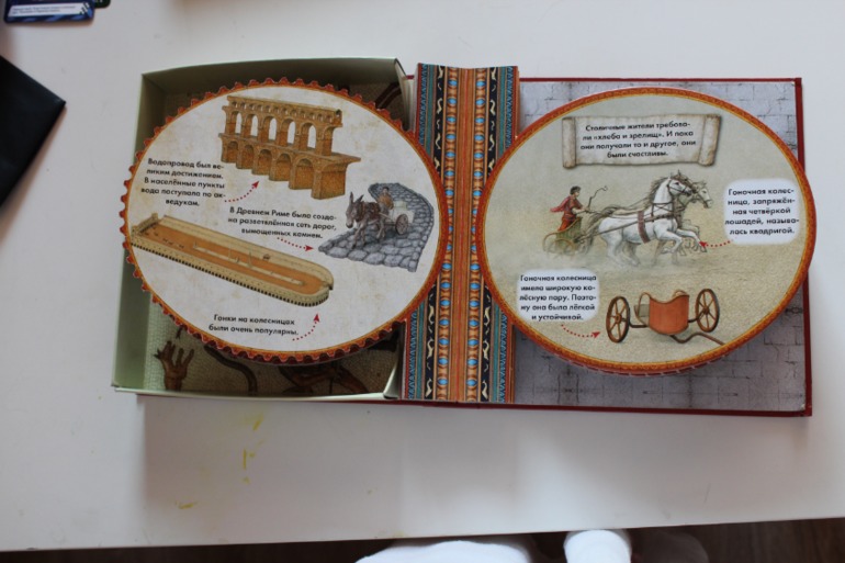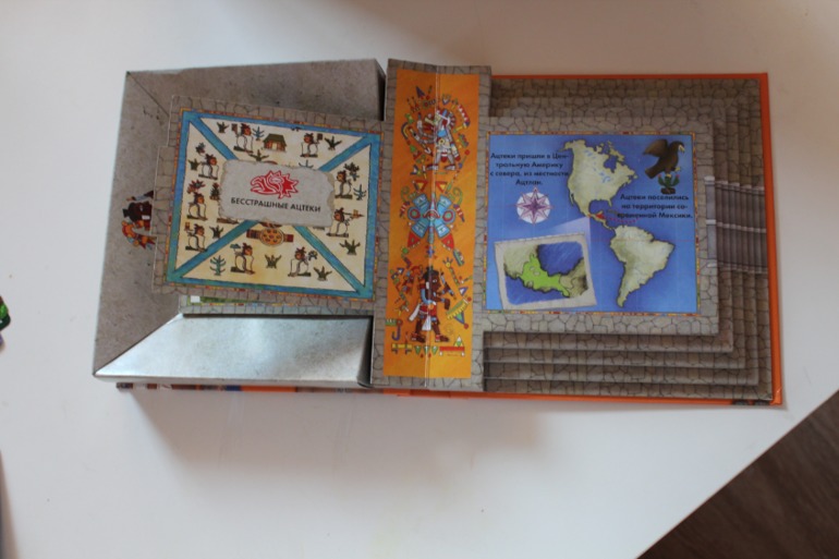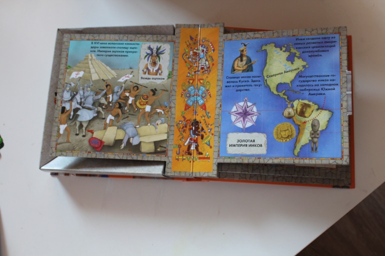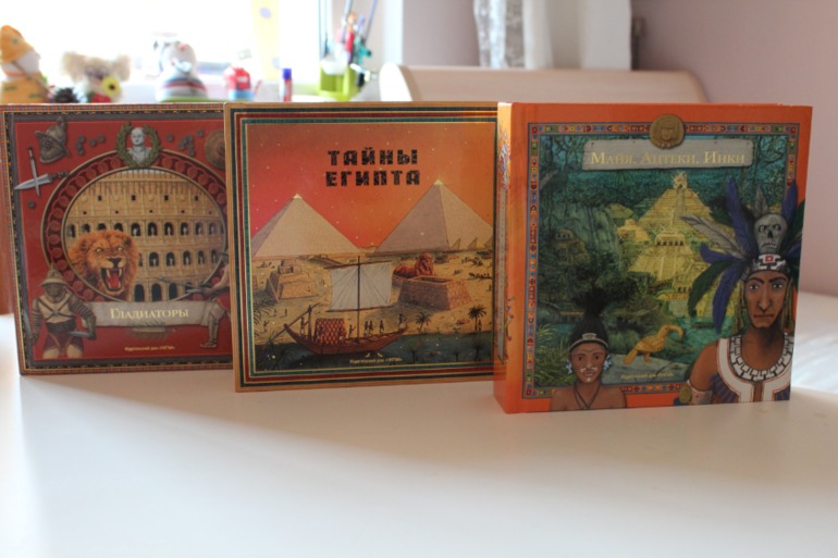 Про содержание- это мини энциклопедии для первого знакомства с историей. Информации ровно столько и в такой доступной форме, чтобы не перегрузить и не оттолкнуть ребёнка, а вызвать интерес и желание всё рассмотреть, прочитать и запомнить, а необычная форма исполнения ещё даёт и визуальное представление о пирамидах и Колизее. Тема древних цивилизаций Майя, Атцеков и Инков вообще редко встречается в детской литературе. Одним словом, книги безусловно полезные и интересные.