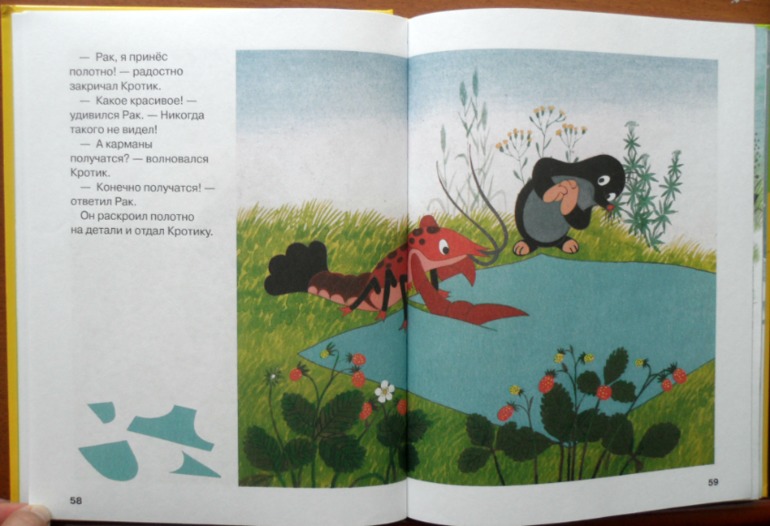 История не только о приключениях кротика, но еще вкраце рассказывается о том как получают ткань, как ее кроят и как шьют вещи ))) Это, кстати, единственный мультфильм со словами.