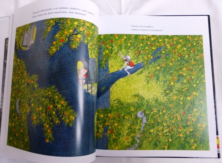 Книга прекрасно оформлена, толстая лакированная обложка с матовой шероховатой текстурой в области иллюстрации, внутри матовая мелованная бумага, но краска на самих рисунках немного бликует. Хорошая цветопередача рисунков, качество печати отличное.