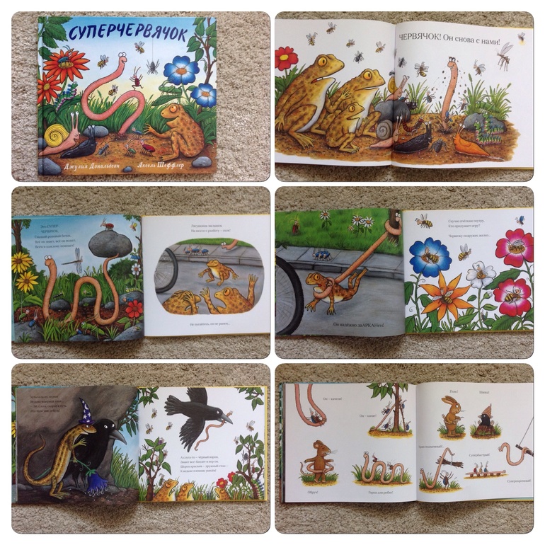 Очередной хит от Джулии Дональдсон. Книга повествует о суперчервячке, который всем приходит на помощь. В сюжете присутствует тема борьбы добра и зла, но добро как всегда побеждает. Книга очень яркая, иллюстрации на каждом развороте, ребенку очень нравится! Хотя Володя упорно называет червяка змеей)) все никак не могу найти червяка показать ему:))) книга пронизана юмором. Я чуть не упала, когда на обложке книги с обратной стороны выяснилось, что червяка-супергероя, которому посвящена целая книга, зовут Лео:)))