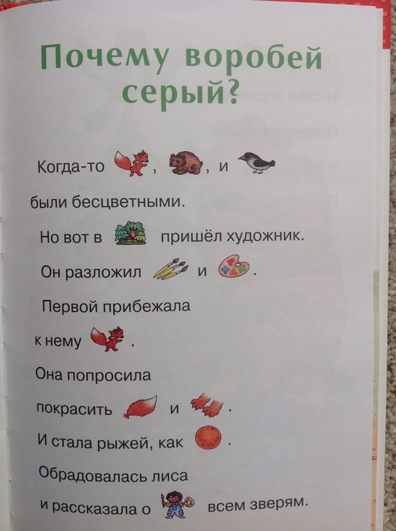 Читаем эту книгу вместе с Володей. Он активно участвует, а все потому, что там вместо некоторых слов вставлены картинки, которые должен озвучить ребенок. В книжке представлены сказки о животных.