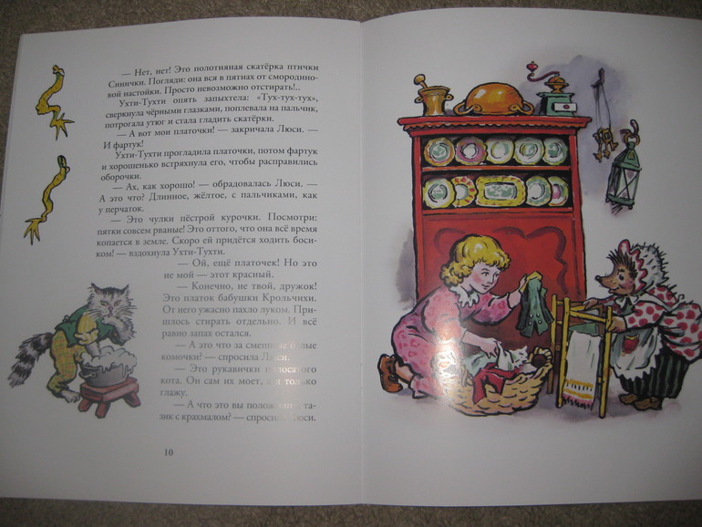 Не скажу что я в восторге от этой книги, по моему немного скучновато, но дочке нравится. История о маленькой ежихе Ухти тухти, которая стирает и гладит белье. На мой взгляд современным детям, которые не знают как стирают белье это может показаться интересным и познавательным, т.к. мало кто из детей видит как мама стирает в тазу, потом полоскает и выкручивает..