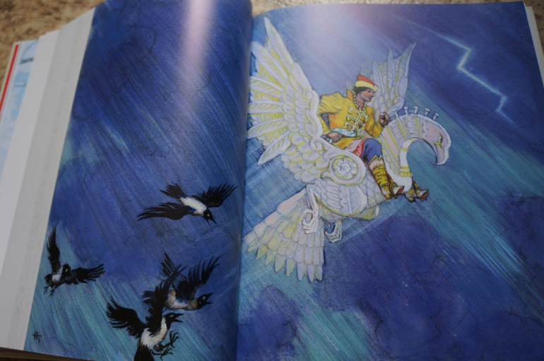 По поводу картинок: нам их вполне достаточно. И они такие шикарные и оторваться от них невозможно. На каждую сказку есть иллюстрация на 2 страницы (целый разворот), на 1 страницу и на 1\3 страницы. Тем более сказки эти не для малышей, а для деток постарше.