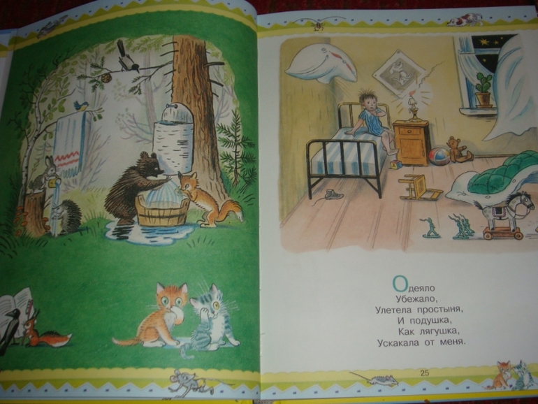 Ох и долго я выбирала Чуковского и остановила выбор на этой книге. Рецензий и отзывов практически не было. НО я не ошиблась. Книга действительно очень хорошая. И если, кто как я выбирает Чуковского, советую обратить внимание на эту книгу. Во-первых обложка - яркая и интересная для ребенка. Во вторых рисунки Сутеева. В третьих листы очень плотные офсетные, белые не шероховатые и не просвечивают. Вообщем смотрите сами.