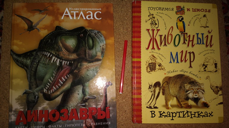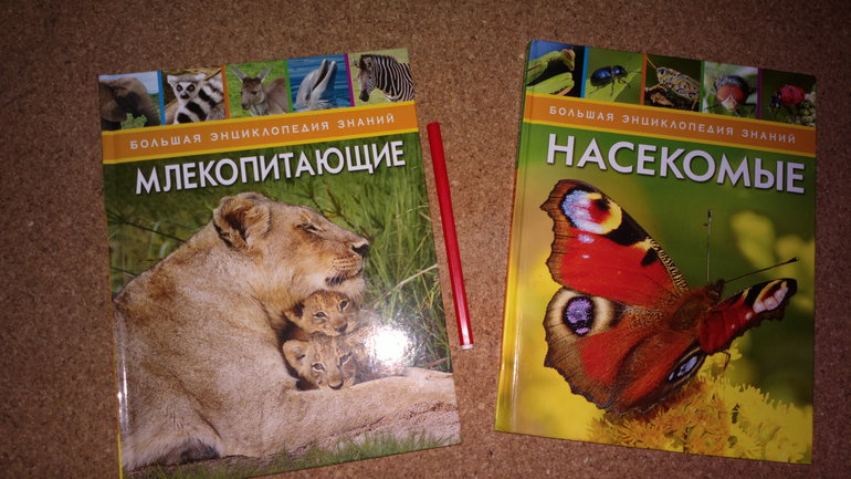 1. Большая энциклопедия.Животные.Довольно внушительный размер. Купили её, когда Тиграше не было и 2-х лет. Я думала, что книга "на вырост", а оказалась не права. Единственное, книга тяжелая и неудобно малышу было с ней управляться.А теперь уже привык, сам достает с полки, сам листает и несет маме читать.