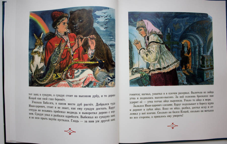 Сказка дана в обработке Афанасьева, немного тяжеловат текст, но и это прощается. Единственное,текст бывает опаздывает за иллюстрациями. Но зато какие все таки прекрасные рисунки!!!!!!