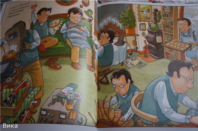 Это очень трогательная и душевная история, рассказывает нам как старательно и с любовью почтальон готовил подарки для своих друзей. Он между прочим. оказался на все руки мастер: вязал, сваривал, вышивал, шил на машинке, пек печенье, плел корзину.... Мне кажется, эта книга будет музой. вдохновляющей детей на подготовку рукодельных подарков для родственников.