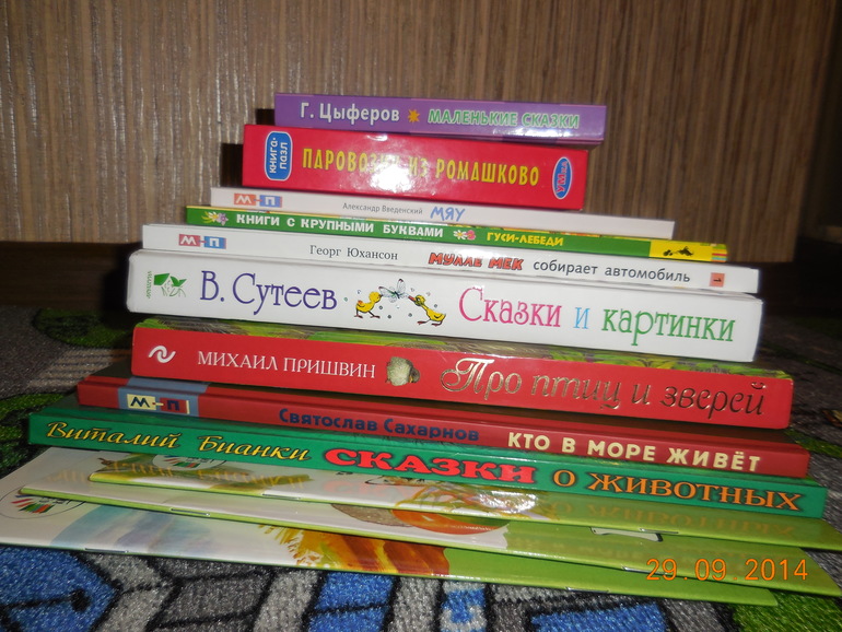 Ну вот и всё, что читается. Есть книги, которые не пошли вообще. Есть много идей что хочу приобрести. Например, ещё едет посылочка со сказками Пушкина, Заходера, Пляцковского "Ромашки в январе", Ракитина "Стёпа и Клёпа" и др.. Папа наш просто настоятельно рекомендует Пушкина читать. А то из стихов у нас сейчас читается Чуковский (меня уже от него подташнивает и что он всем детям так нравится) и Степанов тоже наизусть уже всё.