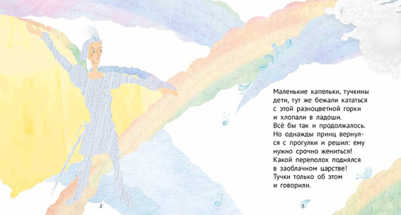 Красивая сказка о том, как повстречались Осень и Дождь. Оказывается, яркое платье из разноцветных листьев Осень сшила себе ко дню свадьбы с самым завидным женихом облачного царства - принцем Серебряным дождем. А помогал ей в этом ее друг Осенний Ветер. Нежные иллюстрации кому-то могут показаться блеклыми, а нам с сыном понравились.