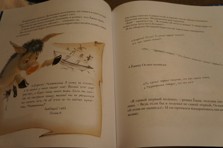 В сборнике 15 новогодних сказок о Ежике и Медвежонке. Все сказочки небольшие по 2-4 странички, очень уютные и навевающие новогоднее настроение. Снежинки, зима, новый год, подарки, снег ... и трогательный текст, который меня лично умиляет: